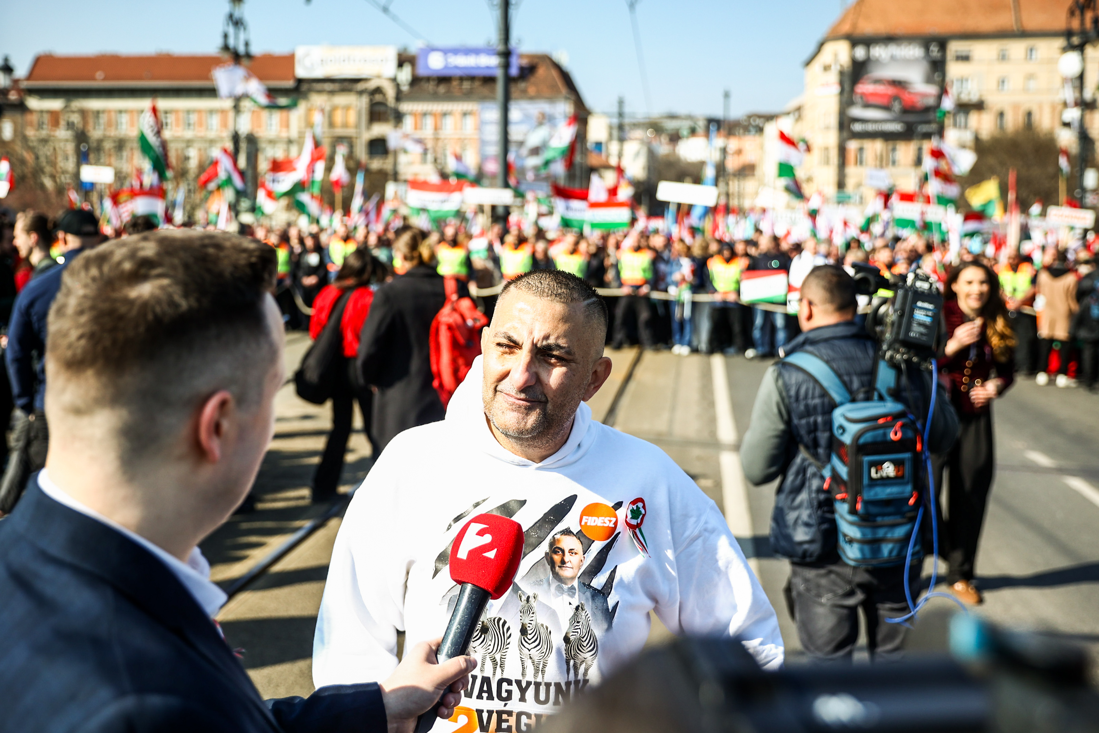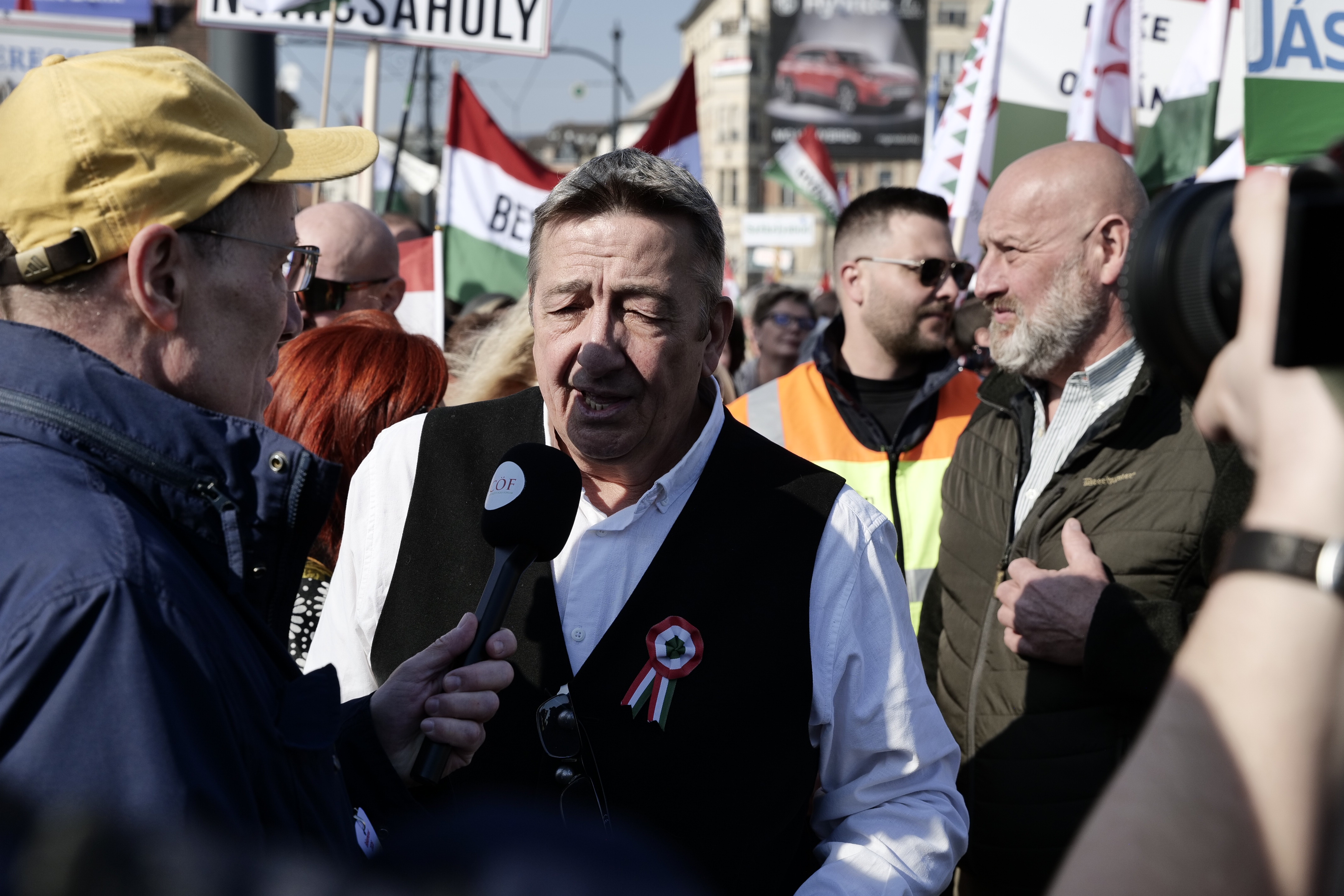 A Békemeneten részt vesz a Fidesz kampányában az utóbbi években rendre szerepet kapó Gáspár Győző is, aki a helyszínen interjút adott a Partizánnak. Az első kérdés az volt, hogy el tudja-e képzelni, hogy a Tisza fog nyerni.