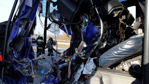 Mentőhelikopter szállítja kórházba a teherautó vezetőjét. Az érintett útszakaszt teljes egészében lezárták.