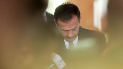 Gyárfás Tamás ellen lakhelyelhagyási tilalmat rendeltek el. A Budai Központi Kerületi Bíróságon ügyvédjével Bánáti Jánossal tájékoztatták a sajtót.