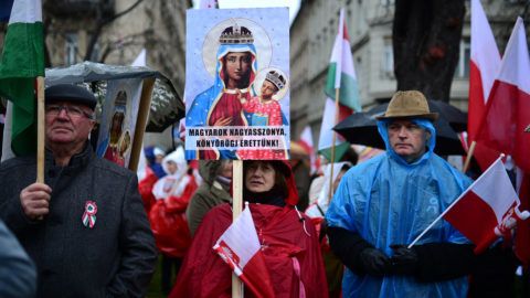 Lényegében kormánypárti szöveget nyom, hogy meg kell védeni Magyarország szabadságát és függetlenségét. Ezért menetelnek