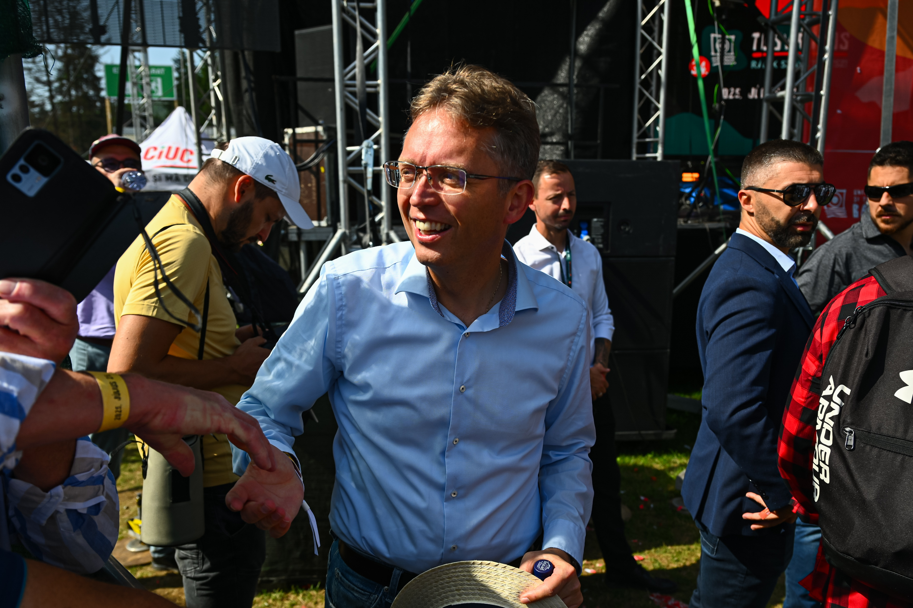 Hankó a beszéd előtt gyorsan még félrevonult csevegni Mrázzal. Időközben Nagy István agrárminiszter is befutott még pár szót váltani a VIP vendégeivel a világmegfejtés előtt.