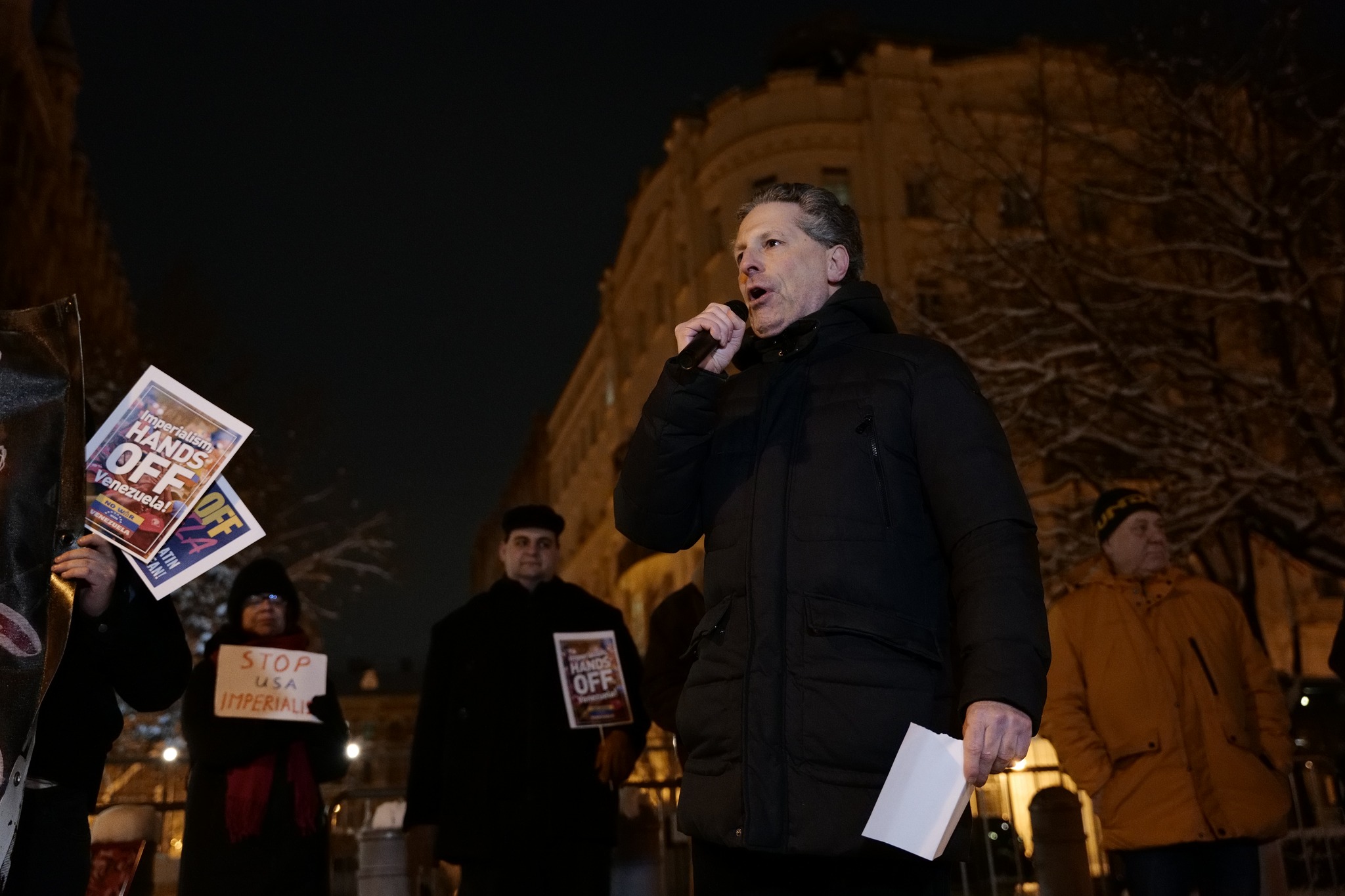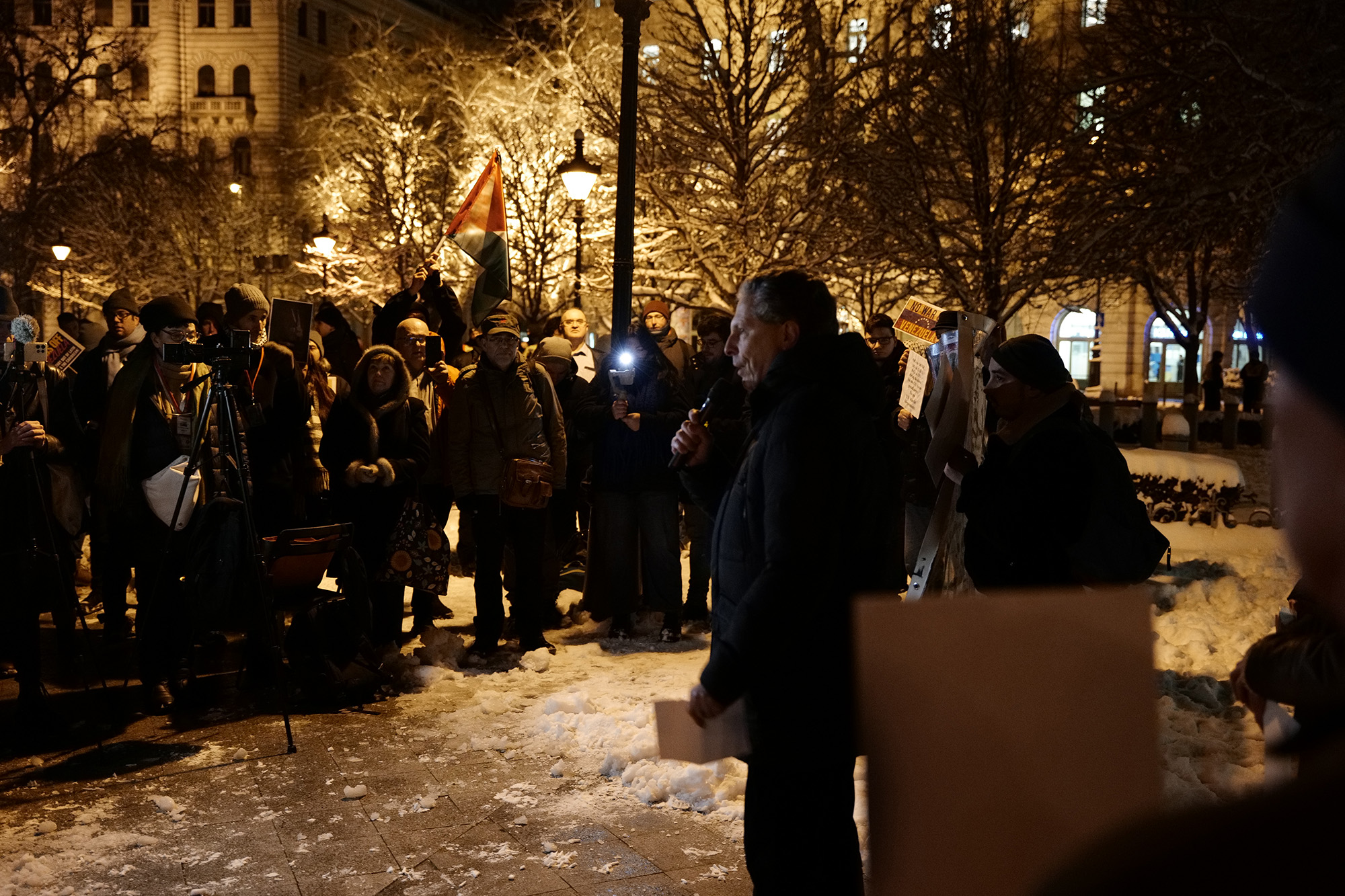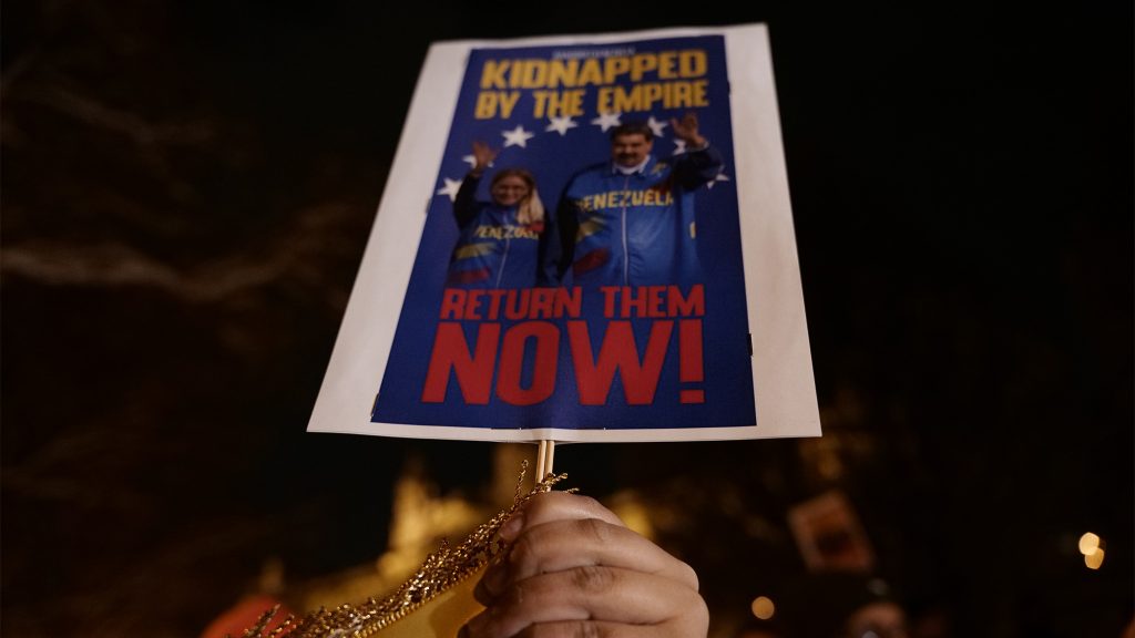 A tüntetők az ellen tiltakozva vonulnak utcára, hogy az Egyesült Államok hadserege január 3-án, szombaton hajnalban elrabolta Venezuela elnökét, Nicolás Madurot.