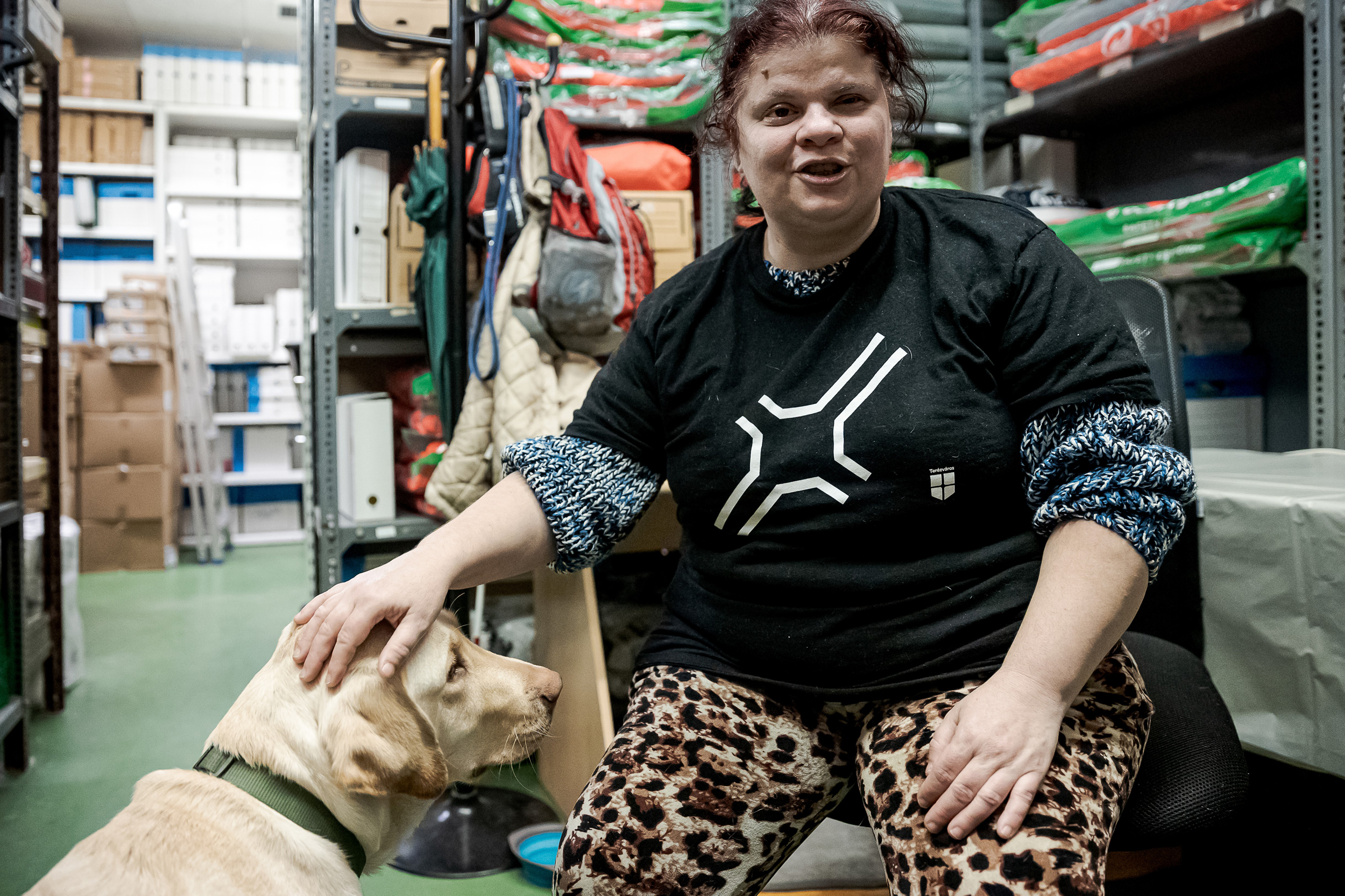 Egy tavaly decemberi munkanapján látogatjuk meg őt a munkahelyén. Illetve őket, hiszen Kata elválaszthatatlan társa Dió, a Baráthegyi Vakvezető Kutya Iskolában kiképzett vakvezető kutya, aki az idén szeptember óta kíséri minden léptét.