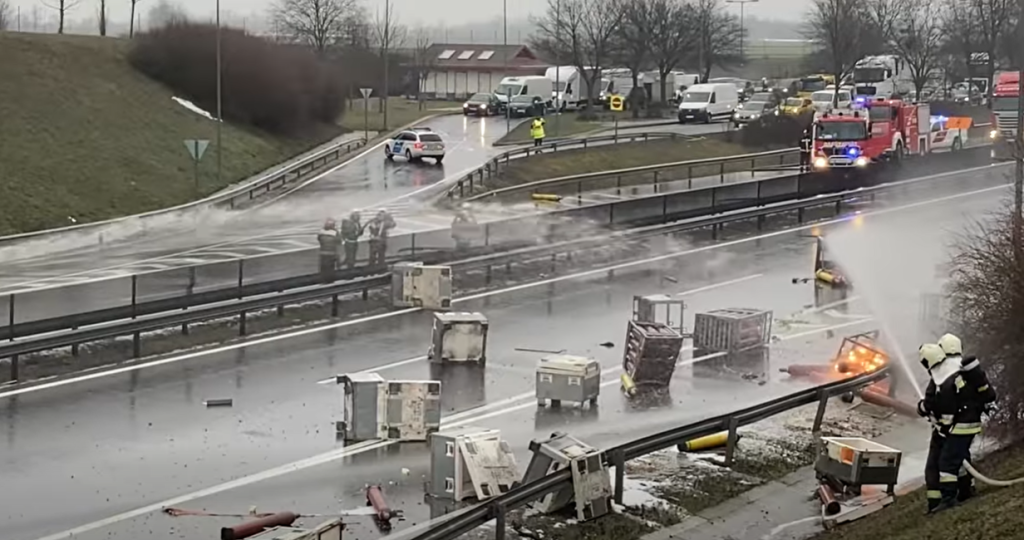 A leesett palackok közül több is meggyulladt, ami miatt az autópályát mindkét irányban teljes szélességében lezárták. A helyszínen rendkívüli óvintézkedésekre volt szükség: a Fejér vármegyei katasztrófavédelmi műveleti szolgálat irányításával nyolc település tűzoltói vonultak ki, akik oltották és folyamatosan hűtötték a veszélyes anyagot tartalmazó palackokat.