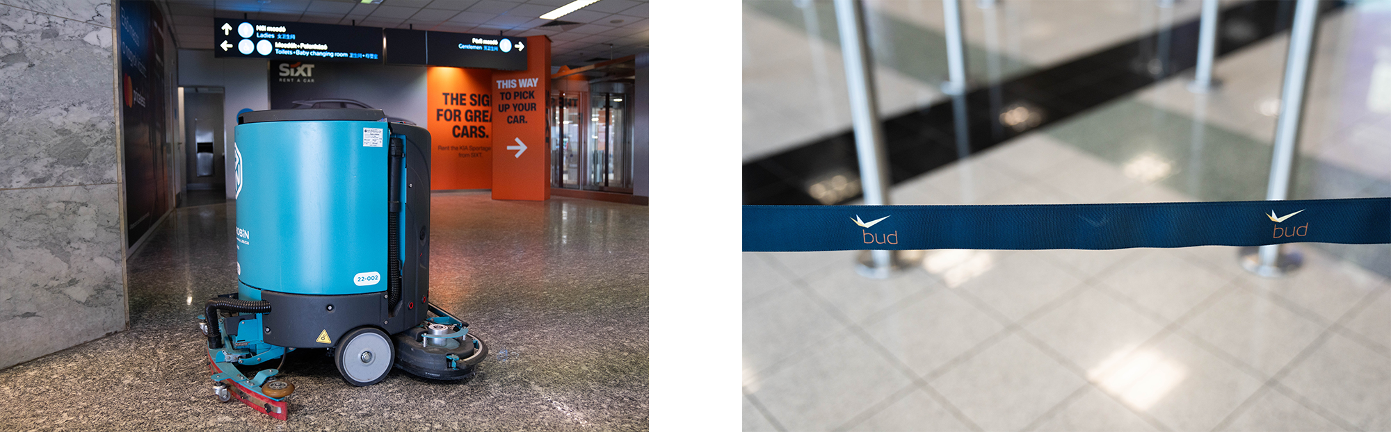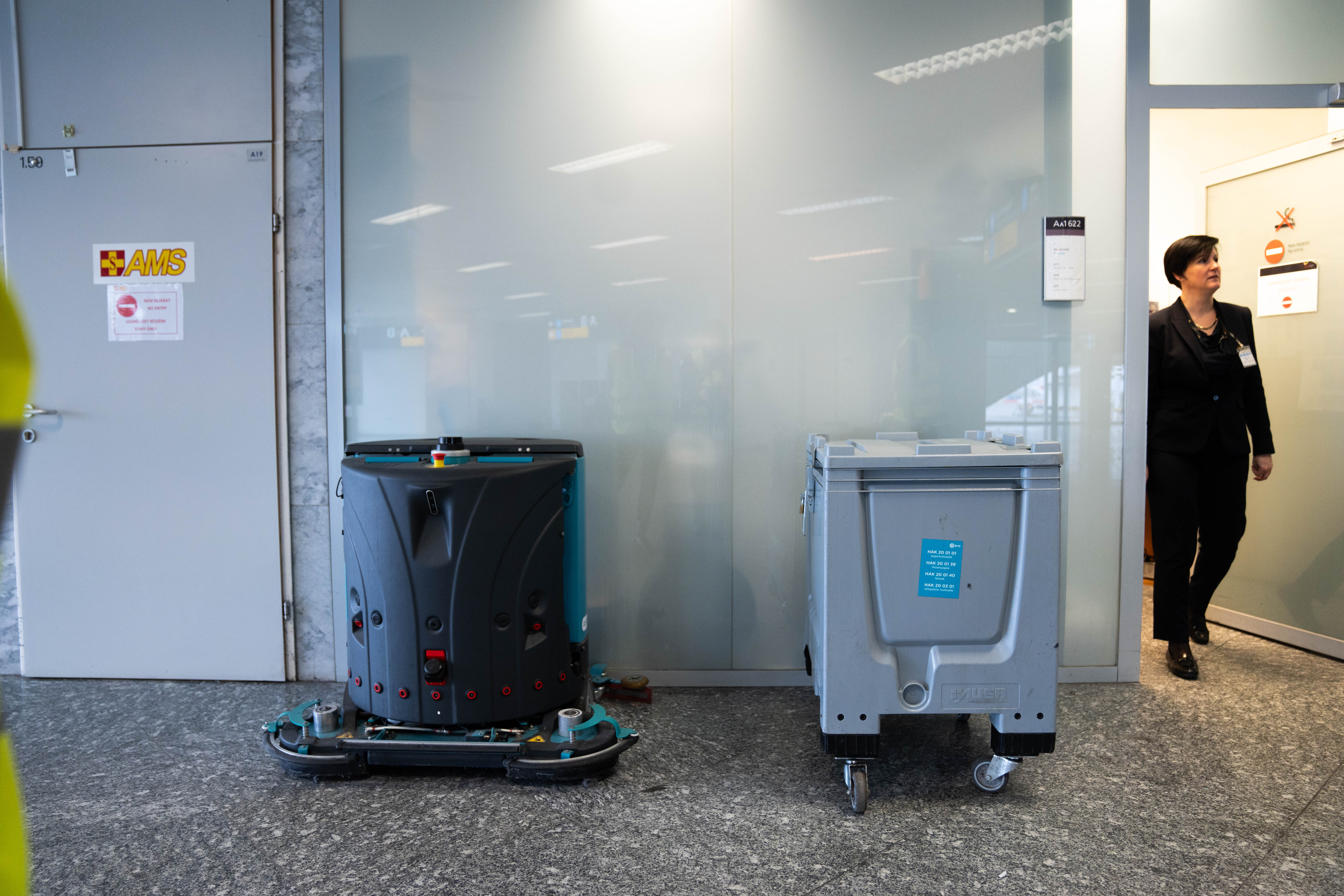 A reptéri takarítást végzők munkáját gépek segítik: van több nagy, ráülős súrológép, több gyalogkíséretű gép, és a reptéren található több ROBIN-ból is látunk egyet. A B+N saját fejlesztésű „kobot-ja”, vagyis kollaboratív takarítórobotja egybefüggő, nagy területek takarítására alkalmas, és viszonylag önálló munkavégzésre is képes – természetesen egy telefonos applikáció alapján a munkavégzést a „felettesei”, azaz a vállalat dolgozói indítják el. A technológiákat folyamatosan újítják: a vállalat rengeteg kiállításra, szakmai eseményre biztosít részvételi lehetőséget, illetve szervez, ahol azt is figyelemmel kísérik, milyen új technológiával tehetnék még hatékonyabbá a takarítást.