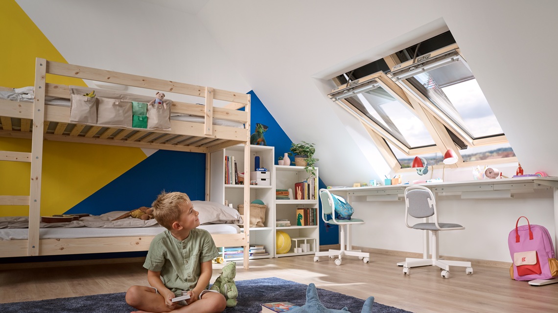 Ez egy okosabb és egészségesebb életmód is egyben: egy elektromos tetőablak megkönnyíti az otthon rendszeres szellőztetését, ami kulcsfontosságú az egészséges beltéri klímához. A VELUX termékeket kifejezetten arra tervezték, hogy egészséges és kényelmes beltéri lakókörnyezetet teremtsenek. A modern otthonokat energiatakarékossági okokból légmentesen záródóra építik, de ez benntarthatja a beltéri szennyeződéseket, a főzésből és zuhanyzásból származó párát, valamint az elhasznált levegőt. A rendszeres, automatizált szellőztetés – amelyet néha a lakás „átöblítésének” is neveznek – kisöpri ezeket a beltéri szennyezőanyagokat és csökkenti a páratartalmat. Bizonyított tény, hogy ez javítja a család közérzetét, az otthon dolgozók, tanulók vagy játszók koncentrációját, sőt még az alvás minőségét is.