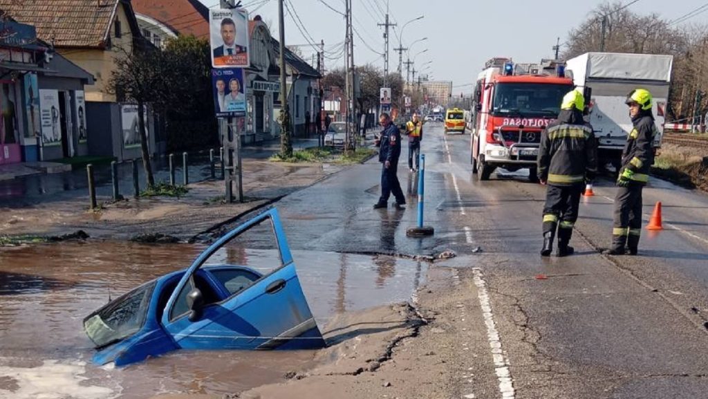 A BRFK fotókat is közzétett egy autóról, amely alatt beszakadt az úttest, és elmerült az út alatt összegyűlt vízben. Mint írják, senki nem sérült meg.