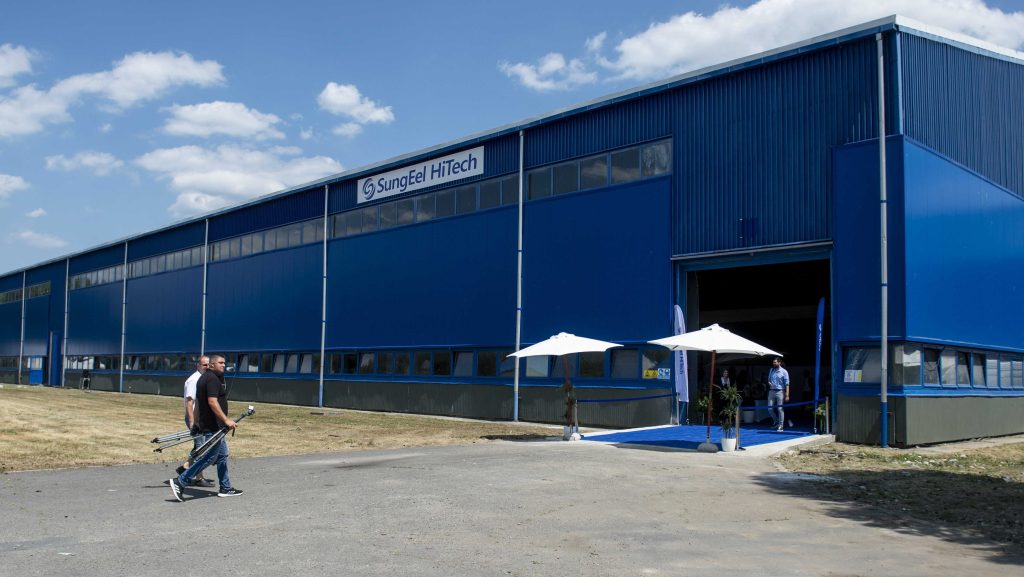 A SungEel HiTech Hungary Kft. második üzeme a bátonyterenyei ipari parkban a megnyitójának napján, 2021. július 7-én.