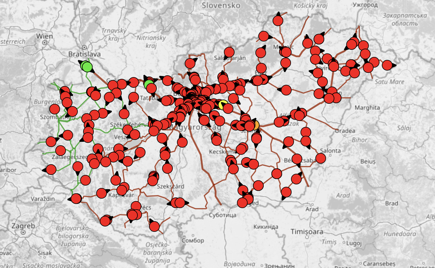 Az oldalakon látható adatok alapján úgy látszik, mintha Magyarország összes vonata éppen 60-70 perc késésben lenne, piros az egész térkép. A Vonatinfo – ami nem hivatalos MÁV-os oldal, hanem a Közlekedési Klubé, de a MÁV friss adatbázisából dolgozik – 8:30-kor így fest: