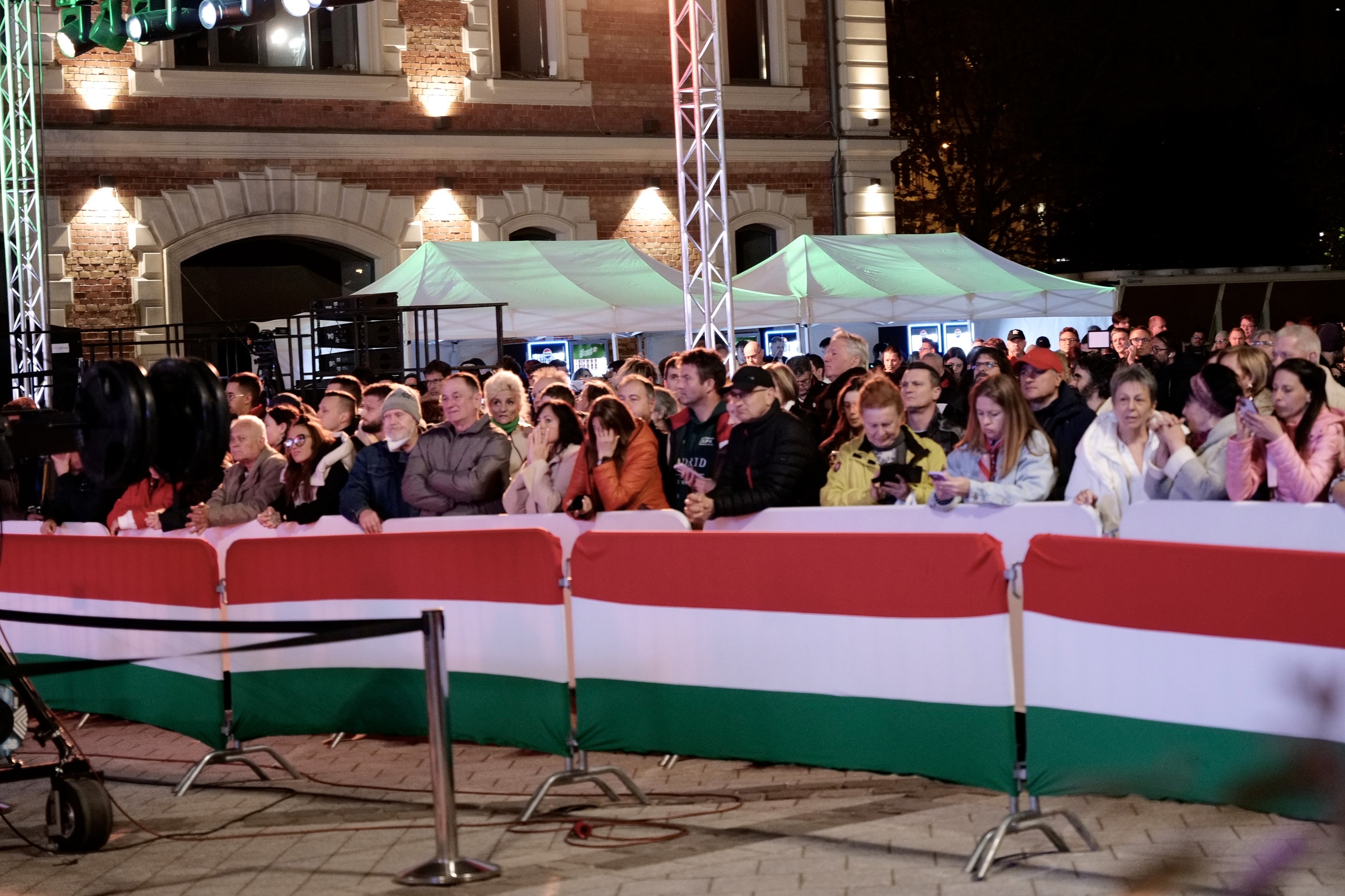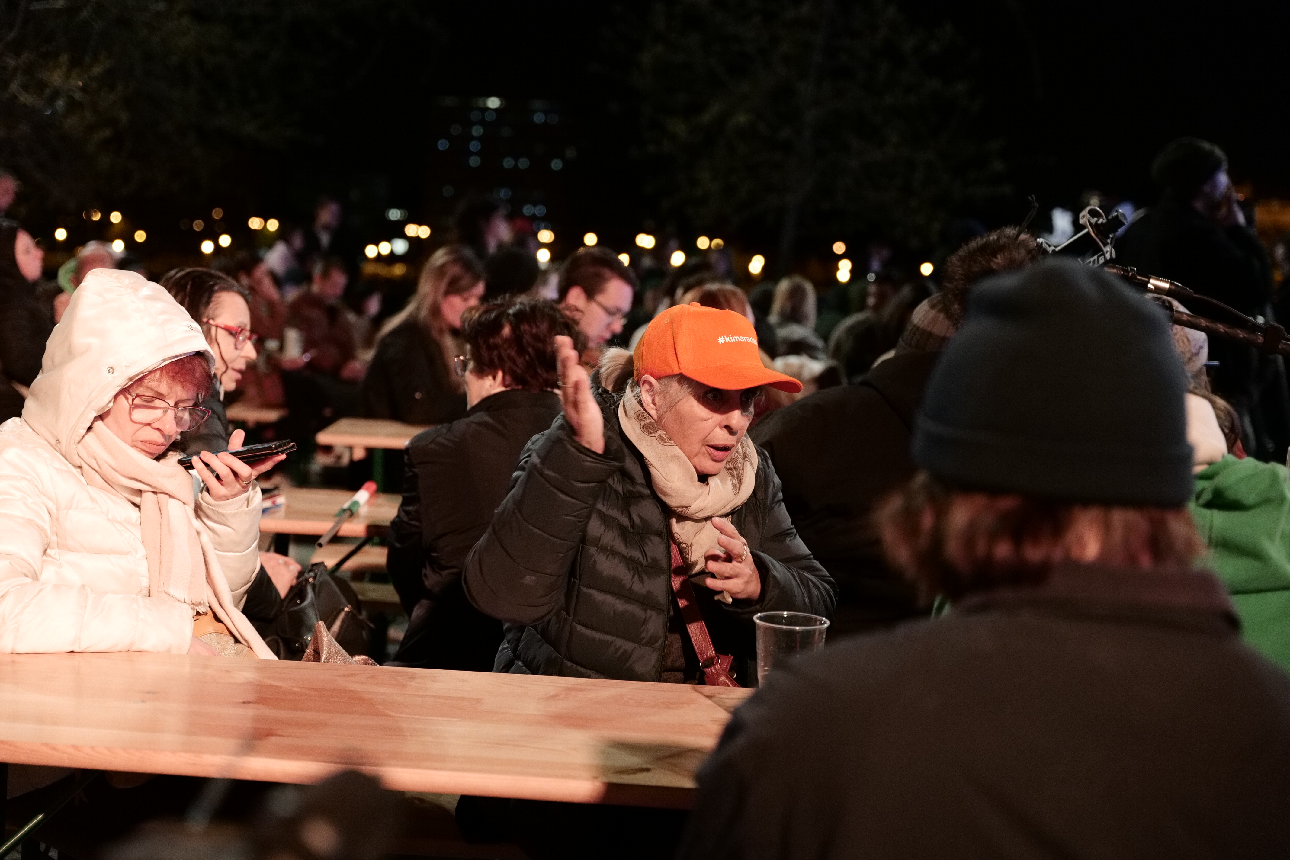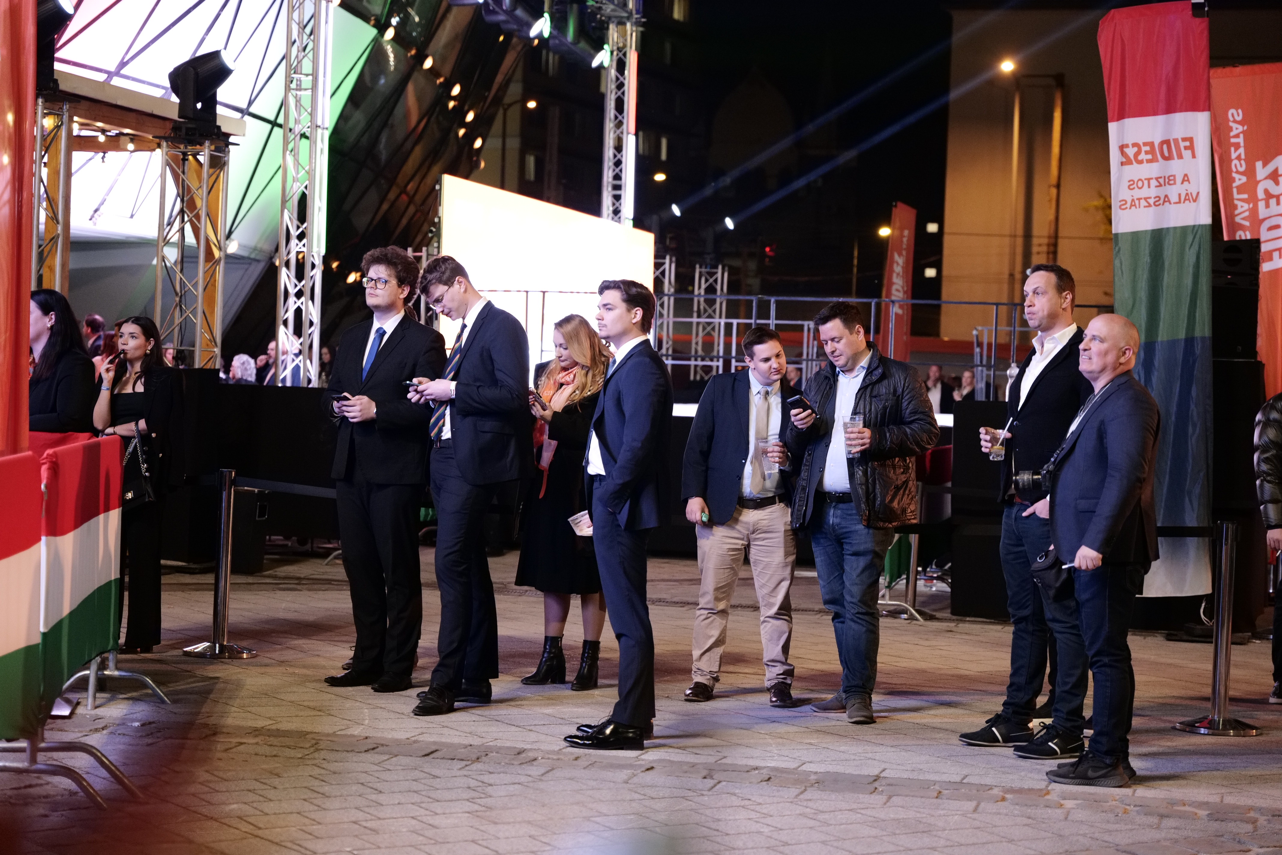 A fekete elválasztó fal résén bekukucskálva ez a látvány fogadott, amikor meglestem, miben vannak a meghívott vendégek. Nincs ünneplés, ez a könnyek éjszakája.