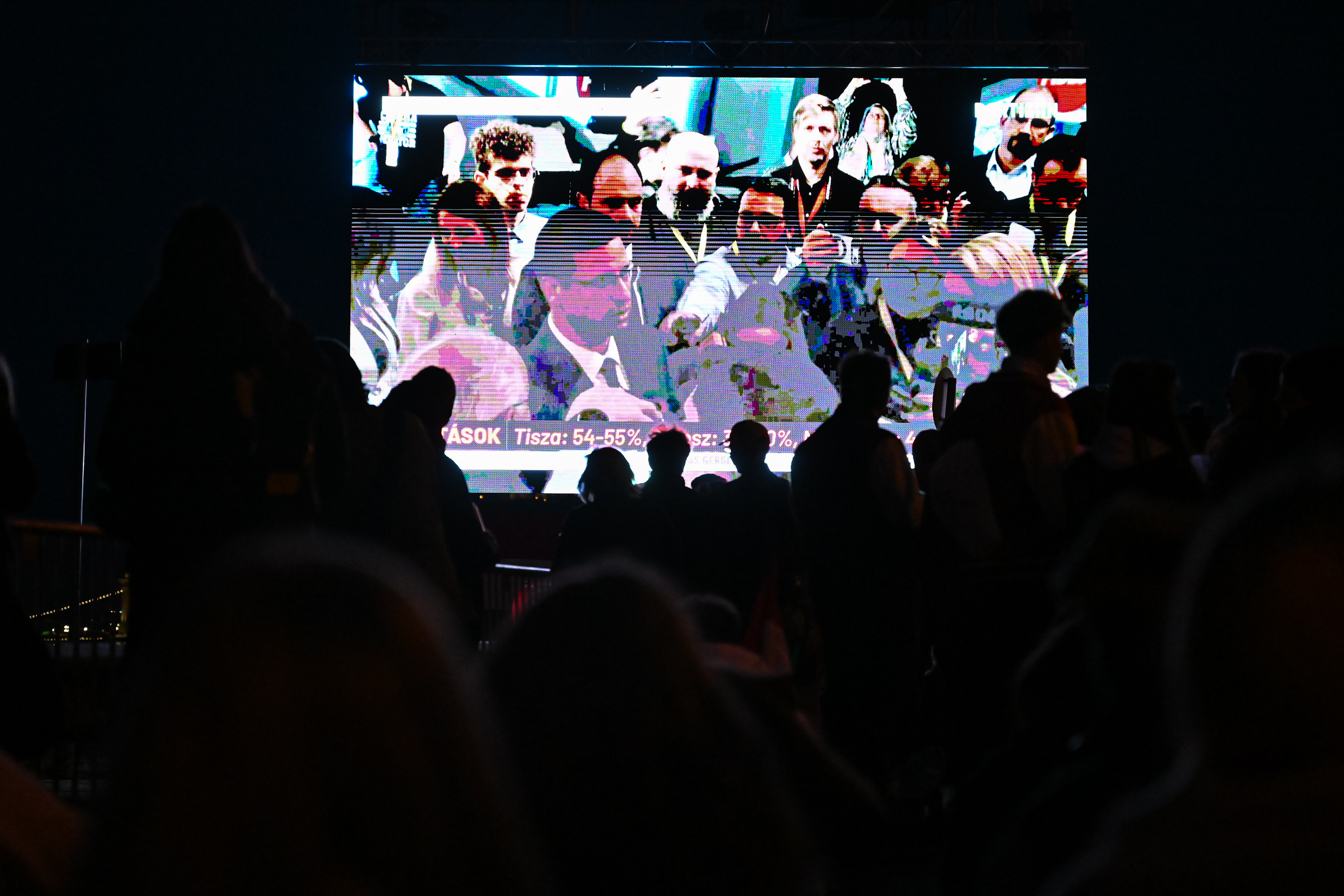 A Tisza Batthyany téri eredményváróján nagy ujjongás és taps fogadta azt, hogy a részeredmények szerint Magyarék listán átvették a vezetést.