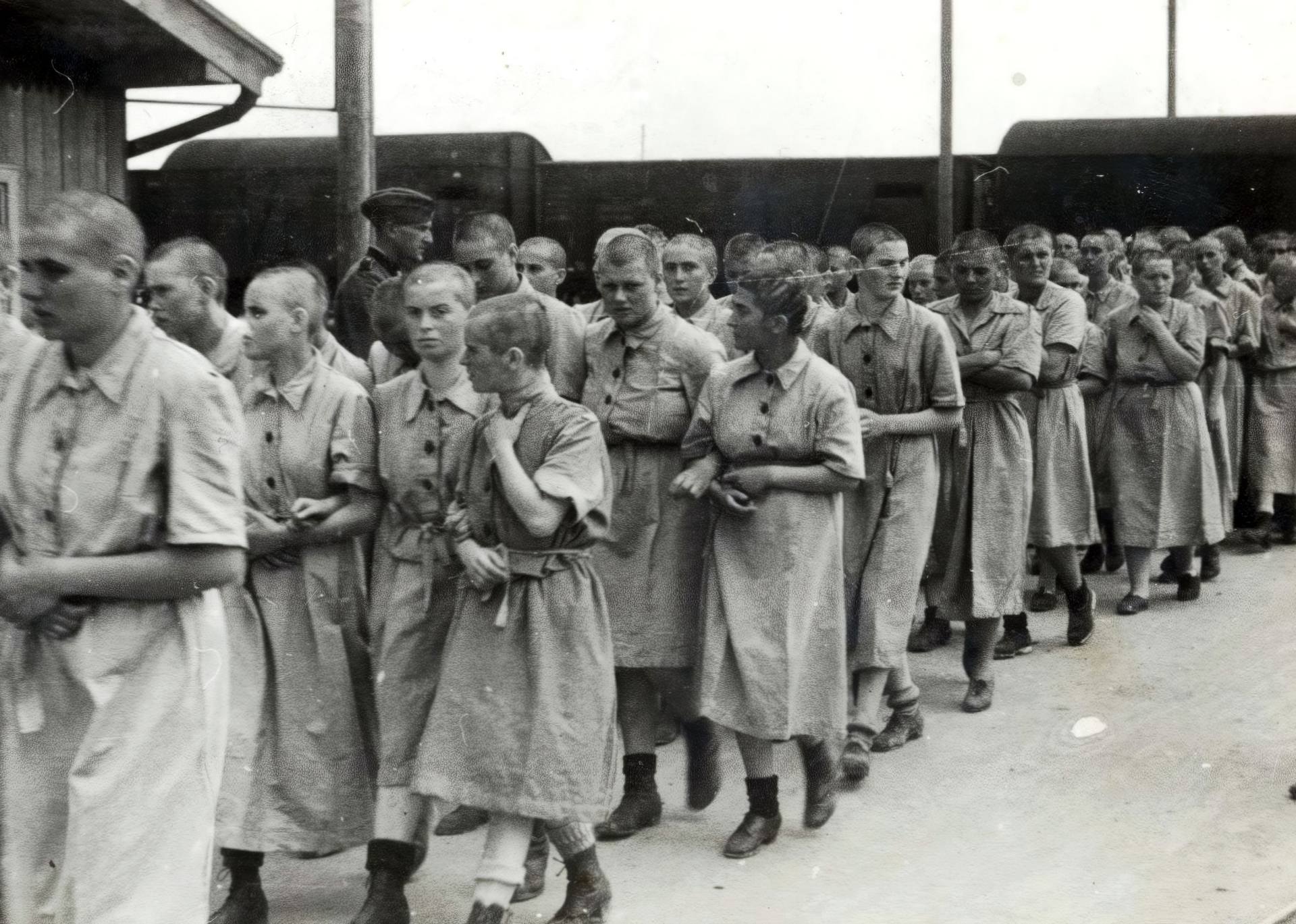 ahol vártak bennünket a borbélyok. Az összes hajat és szőrt lenyírták rólunk. Leborotválták az egész testet. Aztán a fürdőbe irányítottak bennünket. Ott mindent elvettek tőlünk. Csak a szíjat és a cipőt hagyták meg. Mielőtt bementünk, valami csípős masszát kentek ránk, oda, ahol lenyírták a szőrt rólunk.