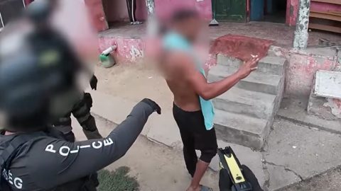 Videón, ahogy egy férfi leveszi az ingét a buszmegállóban, letör egy lécet és elveri vele a haverját
