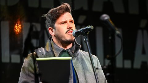Bogos Csaba pécsi youtuber állt fel a színpadra közéleti riporterként mutatkozott be.