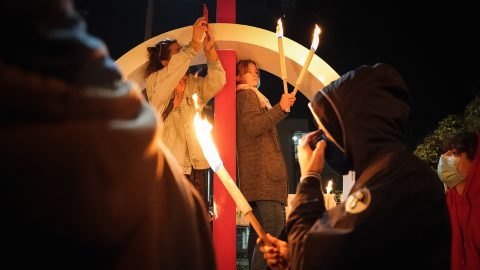 Fáklyás sorral vették volna körbe péntek este a tüntetők az MTVA Kunigunda útjai épületegyüttesét, de a rendőrsorfal ezt nem engedte. Végül néhány ellenzéki képviselő blokkolta a hátsó teherkaput, így pár órára blokád alatt tartották a közmédiát.