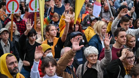 Az ADOM Diákmozgalom szerint 50 ezren vannak a tüntetésen, Schermann Fruzsina, a mozgalom elnöke figyelmeztetett: