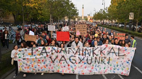 Ismét tömegek tüntettek a tanárokért. A résztvevők a Hősök terétől a Belügyminisztérium elé vonultak, ahol elégették a pedagógusokat fenyegető tankerületi leveleket. A tüntetőket a fizetésemelés ígéretéről és Gulyás Gergely polgári engedetlenséggel kapcsolatos mondatairól is kérdeztük.