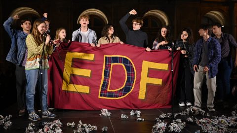 Az Andrássy bámészkodóit és az erkélyekről integető nyugdíjasokat is invitálták a vonuló diákok.