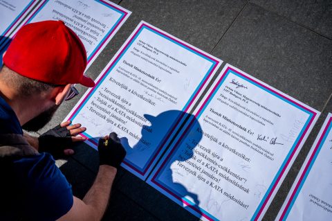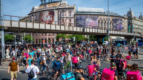 Levelet szeretnének átadni Orbán Viktor miniszterelnöknek a tüntető futárok.