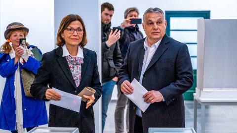 Orbán Viktor miniszterelnök vasárnap reggel – felesége, Lévai Anikó társaságában – 8:18-kor lépett be a XII.