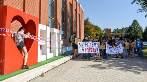 Ezrek vettek részt a Színház- és Filmművészeti Egyetem mellett tartott látványos tüntetésen.