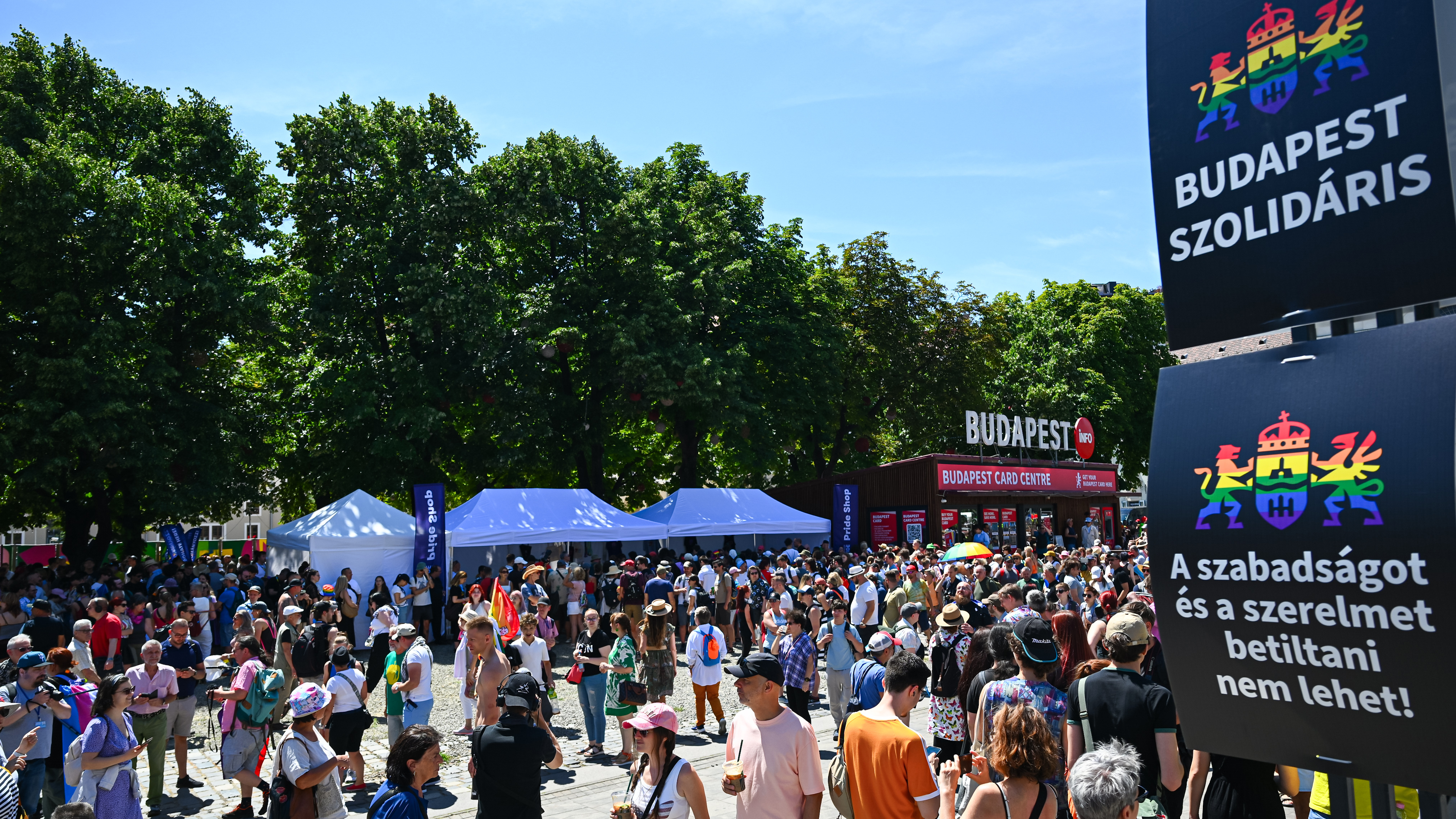 Azt egyelőre túlzás lenne kijelenteni, hogy hatalmas tömeg van, de egyre többen érkeznek a felvonulásra.