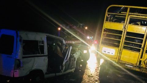 Egy kisteherautó és egy kocsi karambolozott frontálisan.
