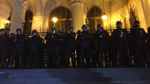 Balhé volt a Fidesz-székháznál, lezárták az Oktogont.