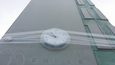 A biztonsági őrök nem látták őket szívesen az egyik egyetemi épület előtt.