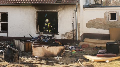 Nagy a füst, légzőkészülékben mentik a betegeket a tűzoltók, akik több mint tíz járművel vonultak a helyszínre.