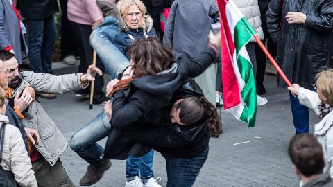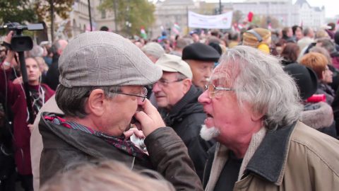 A történész síppal tüntetett a kormány ellen, ezért ma már ütés jár.