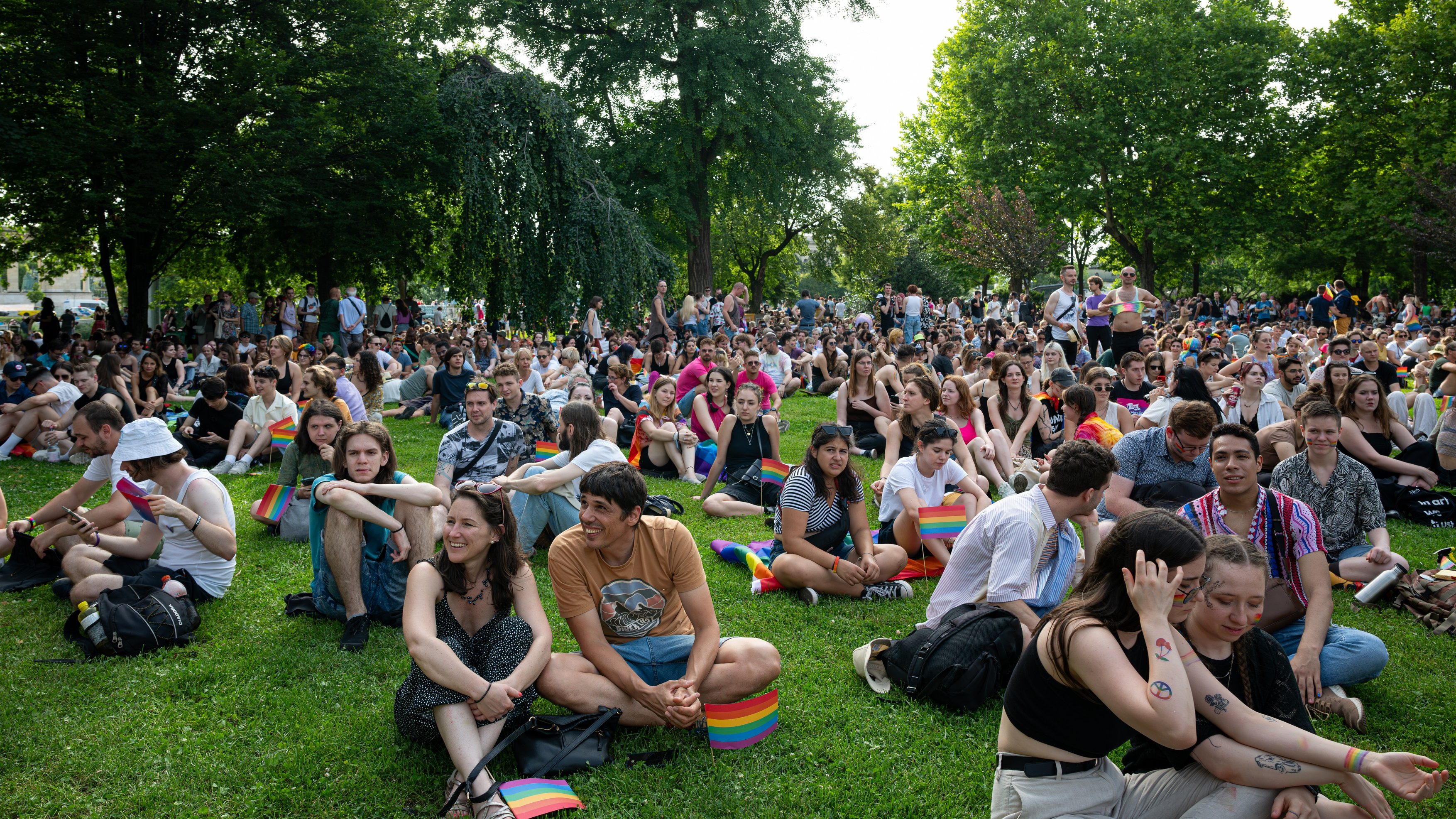 A Tisza elnöke is ott van a támogatók között a Kossuth-téren, ahol egy „Listázz engem is Bayer Zsolt feliratú” transzparenssel szelfizett.