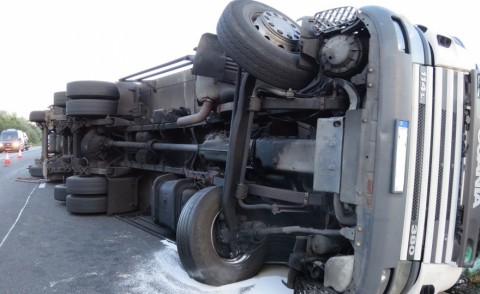 Egy tehergépkocsi a szalagkorlátnak ütközött.