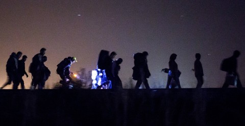 A röszkei-horgosi határátkelő szerb oldalán egy nagy mező van, ahol letáboroztak a menekültek, akiket nem engednek be Magyarországra.