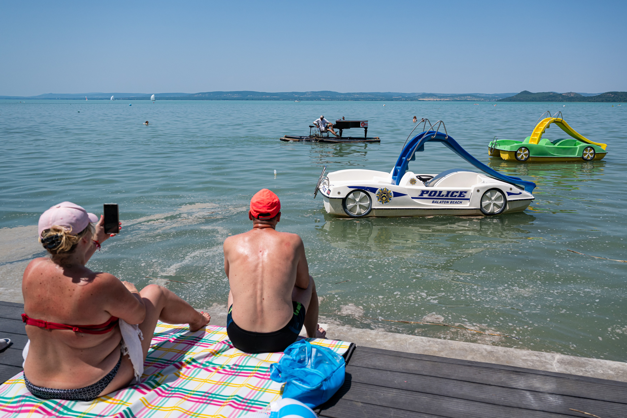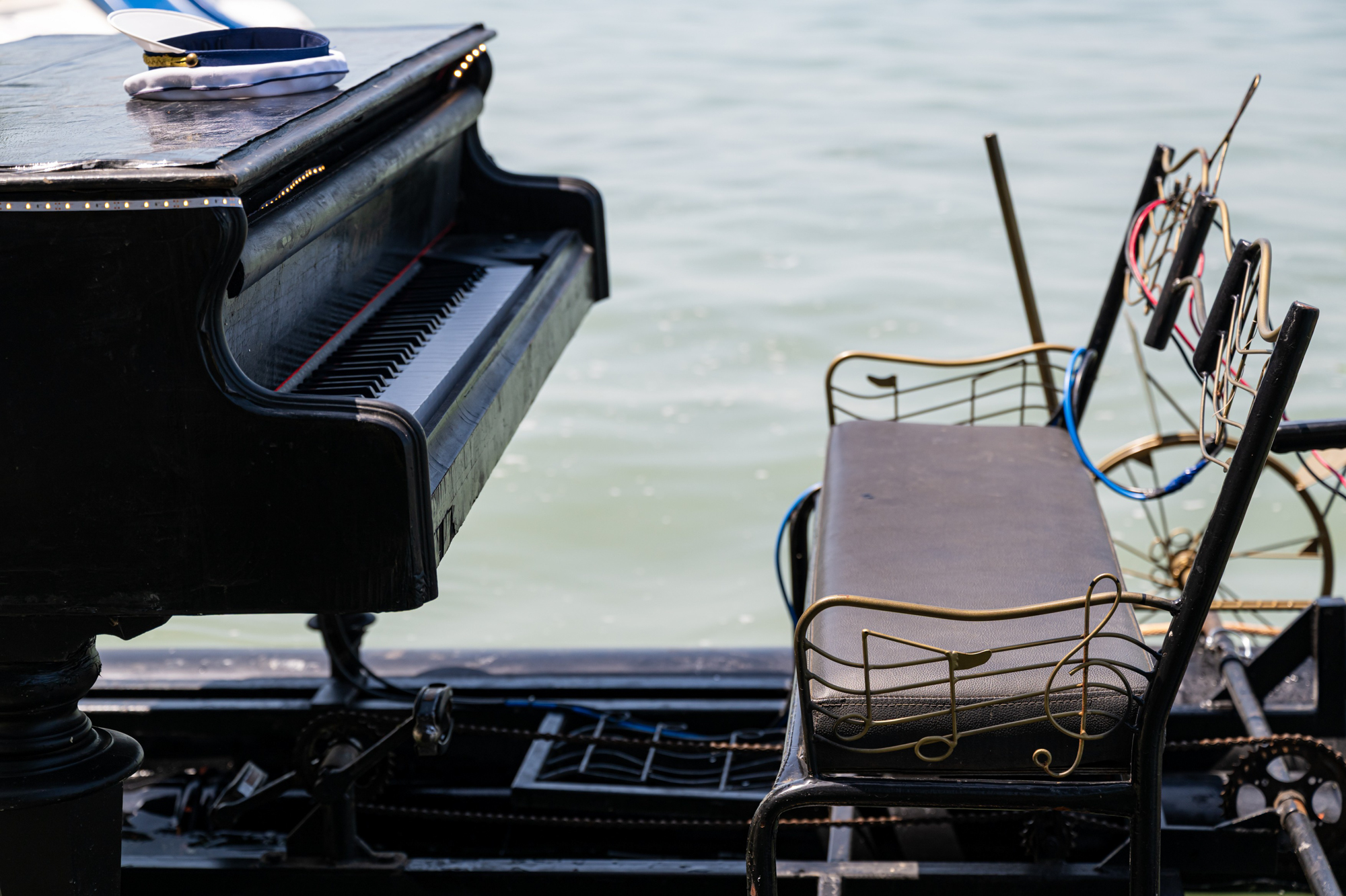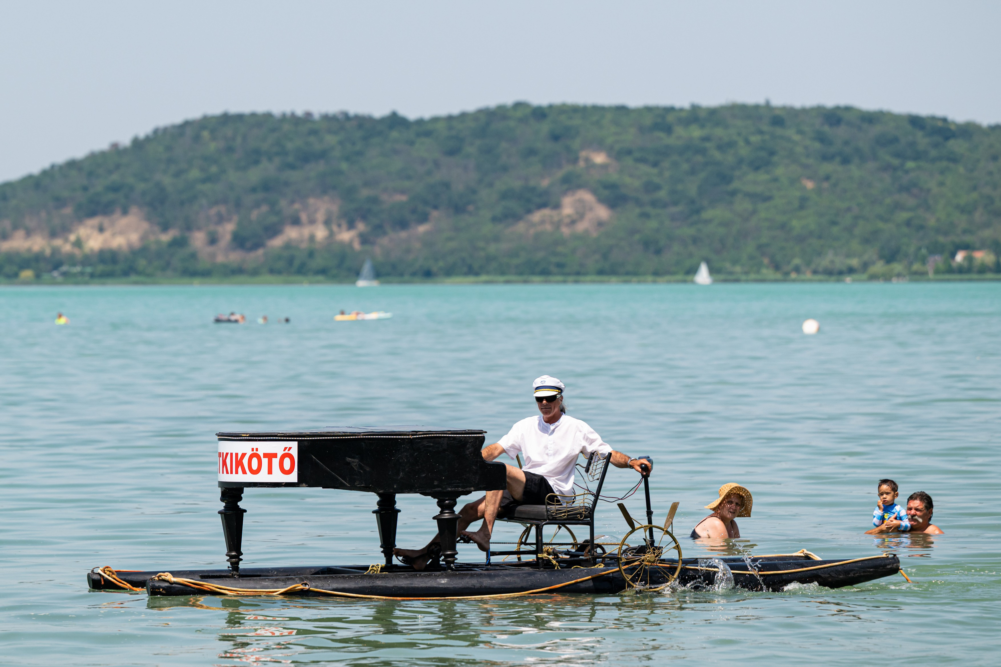 A Balatonon úszó hangszer eredetileg a Magyar Tavak Fesztiváljára készült, ahol hajókkal szállítják az embereket a helyszínek között. Az úszó zongora show- és látványelem volt, ahogy itt, a balatonföldvári strandon is, vagy a két másik helyszínen, Siófokon és Balatonszemesen. A hangszer nem is hangszer igazából, és a tulajdonosa sem zenélt a klasszikus értelemben, mégis már rögtön a megérkezéskor elérte a célját: abban a néhány percben szórakoztatóbb volt a fürdőzés a strandolóknak. Mindenki igyekezett legalább egy képet lőni a Keleti strand sztárjával, aki a Karib tenger kalózai egyik dalával is felhívta magára a figyelmet.