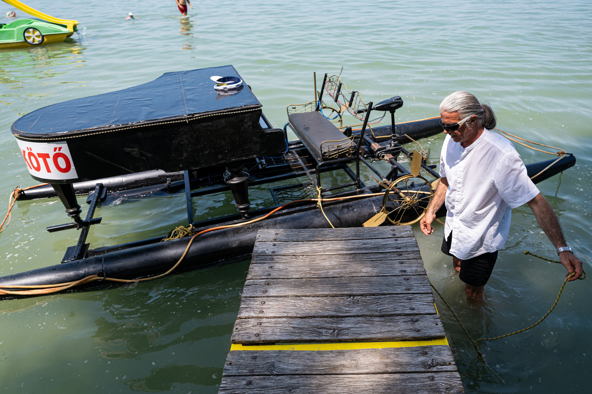 – mondja a Siófokon élő Vágó János, alias Mr. Piano, mielőtt beúszna a víz közepén parkoló zongorához.