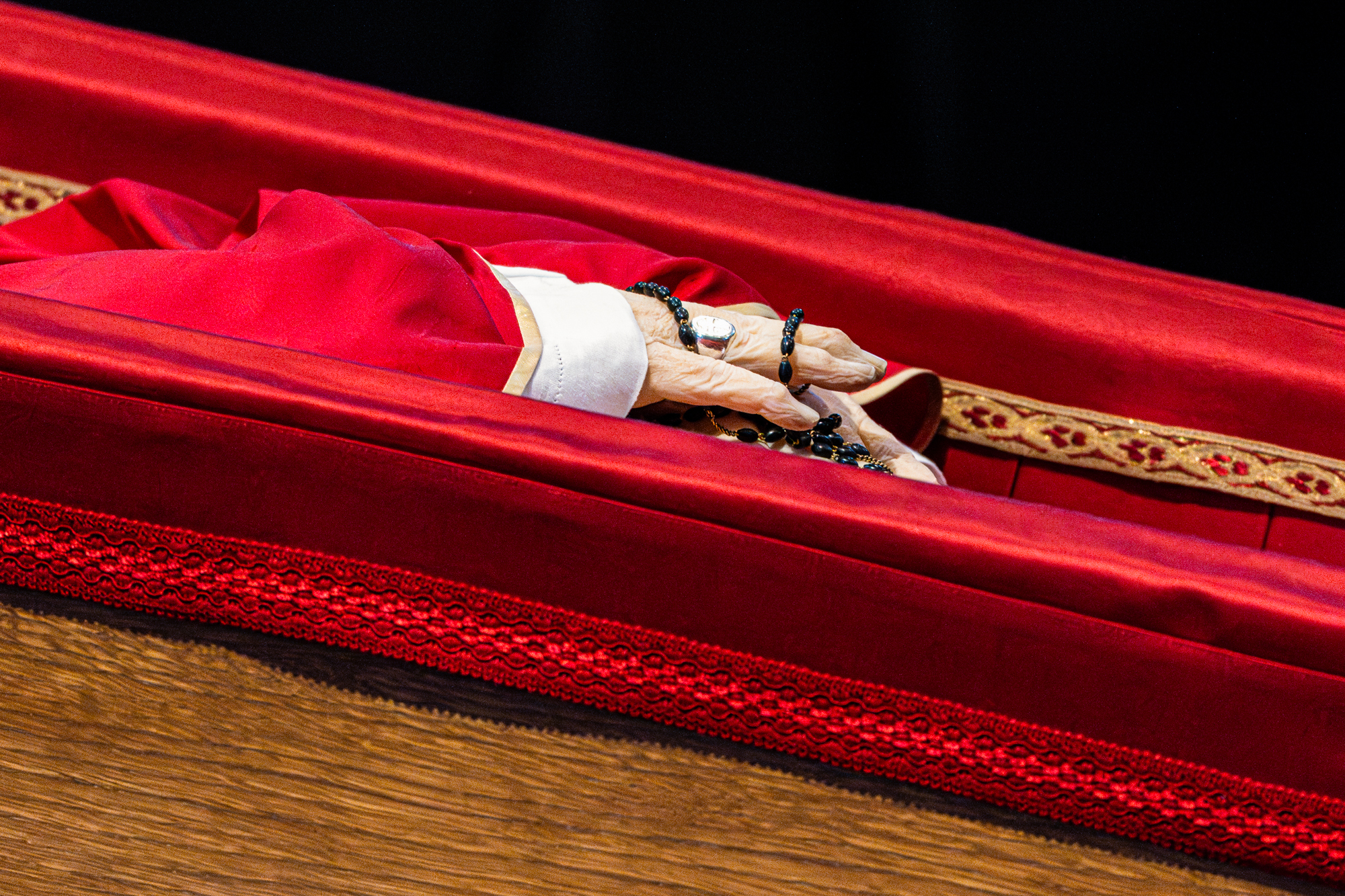 Ferenc pápa 2025. április 21-én, húsvéthétfő reggelén hunyt el 88 éves korában. Április 25. és 28. között voltam a Vatikánban, ahol már az akkreditáció megszerzése is komoly kihívást jelentett, hiszen a világ minden tájáról érkező média munkatársai órákon át álltak sorba. A nyitott koporsóhoz sem jutott be mindenki az átláthatatlan adminisztráció miatt, de végül az óriási embertömeget megkerülve sikerült belépnem a Szent Péter-bazilikába, ahol Ferenc pápa felravatalozott teste feküdt. Másnap délelőtt 10 órakor kezdődött a temetési ceremónia, ahová mi, fotósok reggel 4 órára érkeztünk. Ahogy sorra bukkantak fel a világ vezetői, igazi csapatmunka alakult ki a sajtóemelvényen: mindenki segített a másiknak beazonosítani, kik foglaltak helyet velünk szemben a kijelölt székeken. A szertartás végén a koporsót a Santa Maria Maggiore-bazilikába szállították, ahol végakarata szerint Ferenc pápát örök nyugalomra helyezték.