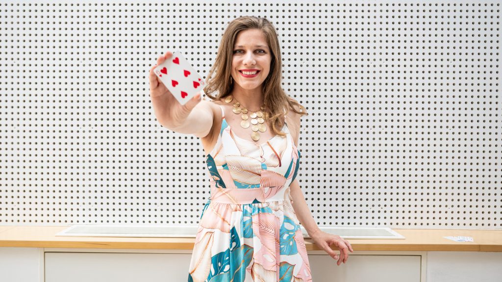 Egy nagy nyári rendezvényen találkoztunk, Anna bűvészstandján reggeltől estig váltották egymást a marketingesek, PR-osok és egyéb konferencialátogatók, ő pedig párperces showműsorokkal varázsolta el a tárgyakat és a kuncsaftokat.