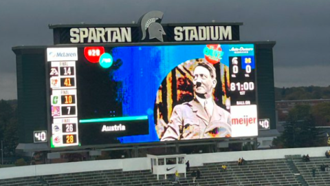 Véletlenül Hitler képe jelent meg a kivetítőn a meccs előtt, bocsánatot kellett kérnie az egyetemnek
