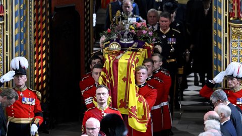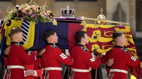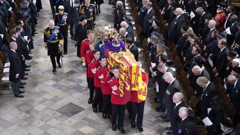 A koporsót hordozó menet a Buckingham-palotához ért, a helyszínen összegyűlt ezrek most vehetnek búcsút II.
