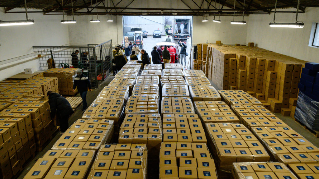 Kiemelt kép: A Mészáros Csoport élelmiszercsomagjai a Búzakalász 66 Felcsút Kft. göböljárási telephelyének raktárában 2020. december 12-én.