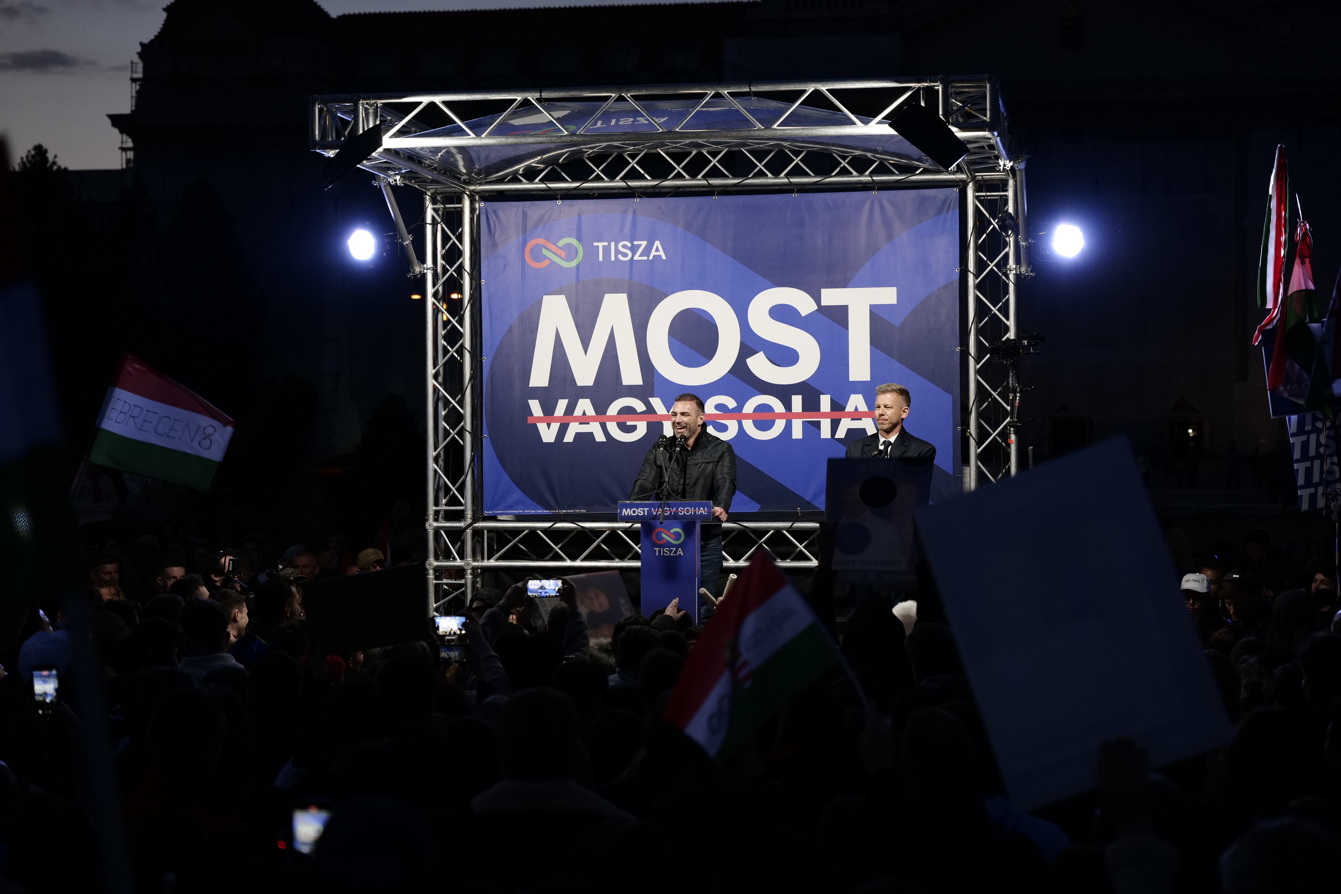 Holnap le fogjuk győzni az állampártot, a Fideszt és meg fogjuk szabadítani gyönyörű hazánkat mindattól, amivel a Fideszes hatalom eddig mérgezte. A korrupciótól, a kivagyiságtól, a hazugságtól és az elszegényítéstől. Mi vagyunk a legerősebb politikai erő. De hiszek abban, hogy nem ez a legfontosabb, ami történt velünk az elmúlt két évben. Ami igazán fontos, hogy két év alatt mi, együtt, közösen meg tudtuk változtatni azt, hogy miről szól a politika. A politika ma már nem egyenlő a propagandával, üres sajtónyilatkozatokkal, politikusok üres színházával. Politika, amikor egy közösség megszerveződik, tűzifát visz, amikor együtt dolgozunk az árvíznél és mi ennél is többet tettünk. Ami itt, Debrecenben elkezdődött két éve, ma már a valóság. Visszaadtuk a magyar nemzeti szimbólum, a csodálatos magyar zászló becsületét. Két nemzeti ünnepünk között nem kell, hogy ez a zászló a padláson porosodjon és nem lehet, hogy egy politikai rendszer a jövőben kisajátítsa.
