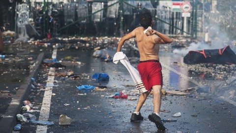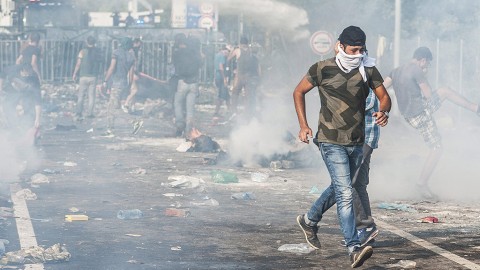 Gumiabroncsokat gyújtottak fel a migránsok, a határátkelőt sűrű, fekete füst borítja. A magyar rendőrök vízágyúkkal és könnygázzal igyekeznek távol tartani a migránsokat az átkelőtől. A szerb rendőrök továbbra sem avatkoznak közbe, viszont észrevehető, hogy ők is megerősítették jelenlétüket. A migránsok felmásztak a határátkelőn található melléképületek, például a régi Duty Free Shopra, azaz a vámmentes boltra, [...]