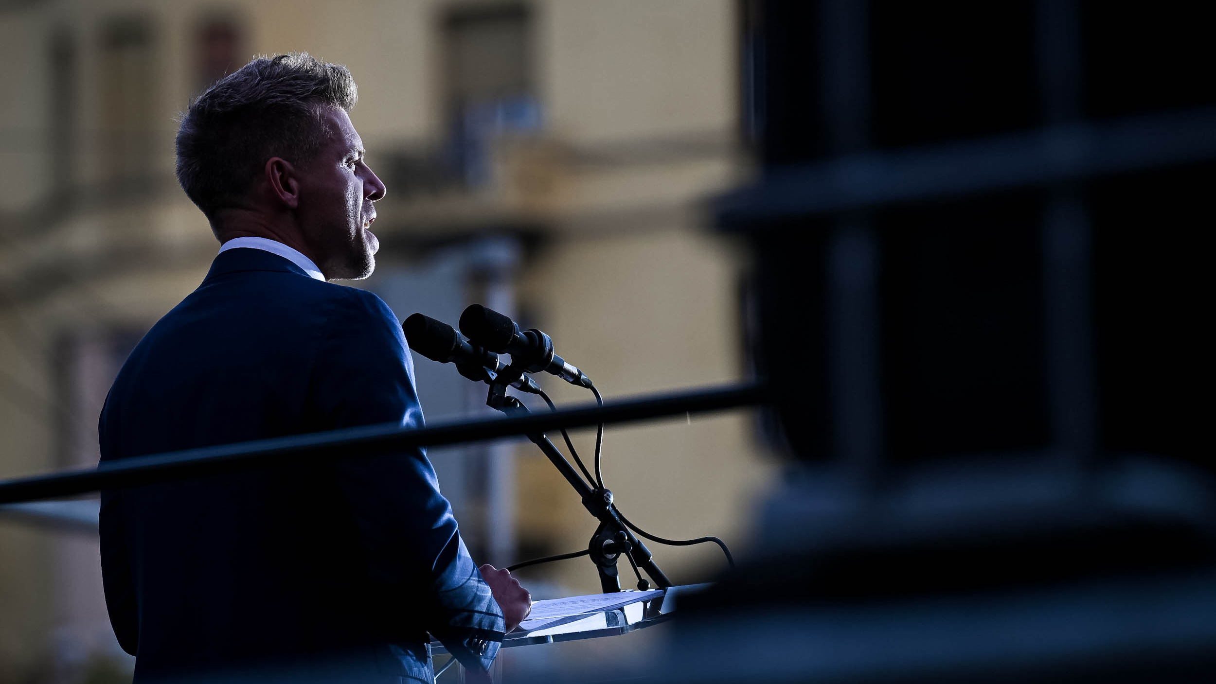 Michal Wawrykiewicz lengyel néppárti EP-képviselő szólt az egybegyűltekhez a Bem téren, a Tisza Párt rendezvényen.