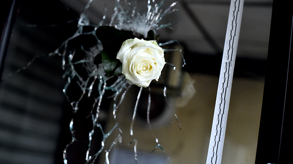 A francia szatirikus lap 12 munkársát januárban mészárolta le két iszlamista terrorista. Legfrissebb számuk címlapján egy szétlőtt bulizó és egy