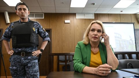Egy orosz bíróság szerdán távollétében nyolc és fél év börtönbüntetésre ítélte Marina Ovszjannyikova volt állami televíziós újságírót, aki egy hírműsorba "Állítsátok meg a háborút" és "Hazudnak nektek" feliratú plakátot tartott maga elé.