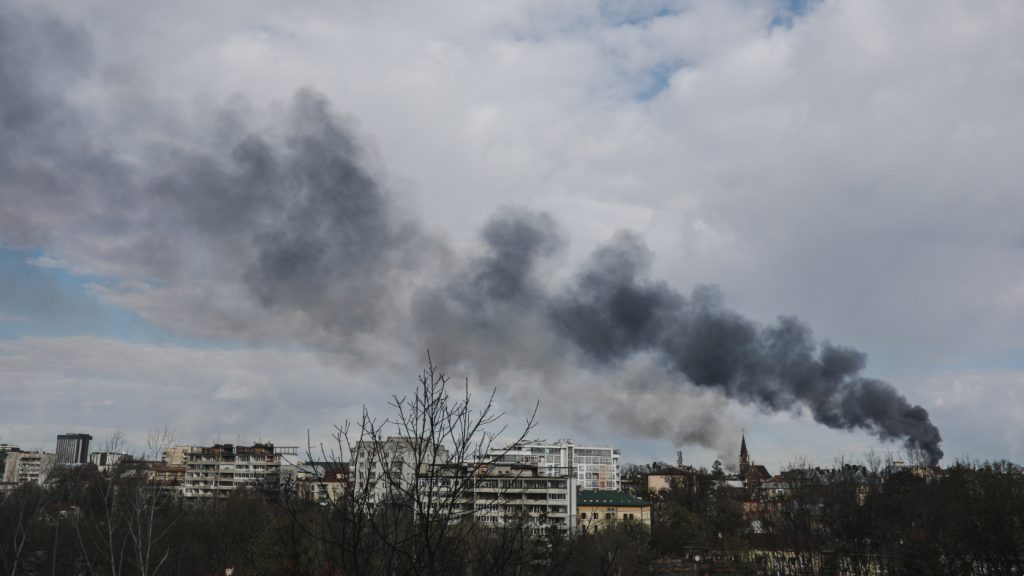 5 missile strikes on Lviv with smoke rising from a few locations. No details of what was targeted yet or how many casualties pic.twitter.com/Q0ifaBELxc