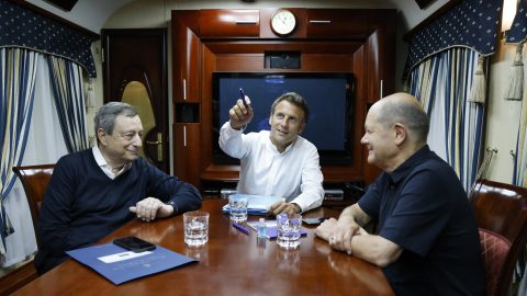 Hans von der Burchard, a Politico (többek közt) brüsszeli tudósítója videót tett közzé Emmanuel Macron francia elnök, Olaf Scholz német kancellár és Mario Draghi, olasz miniszterelnök éjjeli vonatozásáról Kijevbe.