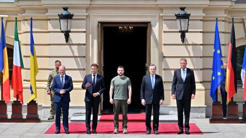 Az ukrán, német, francia, olasz és román vezetők sajtótájékoztatót tartottak kijevi találkozójuk után.