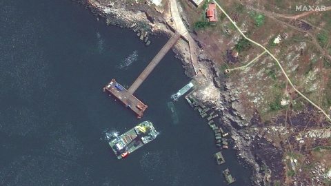 Műholdfelvételek jelentek meg, amelyek egy orosz Serna osztályú hajó elleni állítólagos rakétatámadás következményeit mutatják be a Kígyó-szigetnél, az ukrán-román tengeri határ közelében.